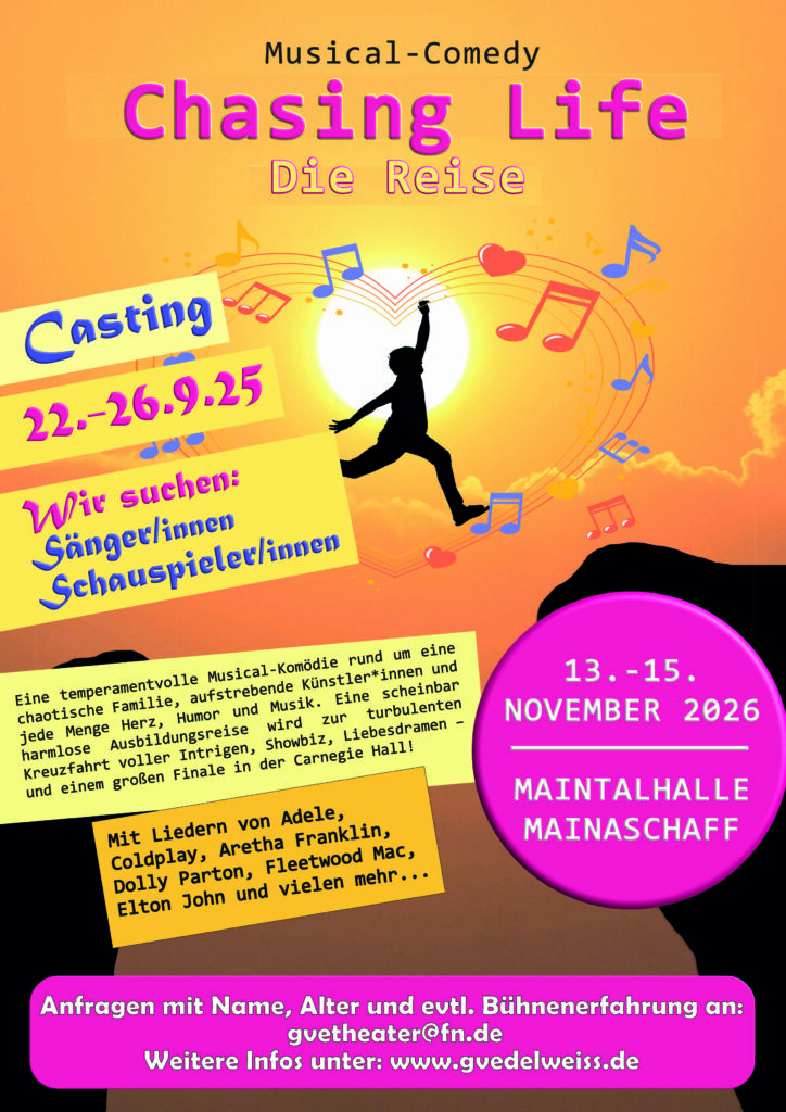 Dann melde dich zum Casting für unser neues Bühnenstück Chasing Life an!